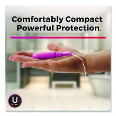 Get full-sized period protection with a comfortable compact tampon! U by Kotex Click Tampons allow you to discreetly carry in your purse or pocket. Small in size but big on protection, these tampons go from compact to a full-size tampon in one easy step. Pull the lower half of the tampon until you hear it lock and then insert. Click Tampons are designed with a smooth tip for comfortable, quick and easy insertion. The tampon expands so you're fully covered to help stop leaks. These unscented tampons are not made with natural rubber latex and have no fragrance added.
